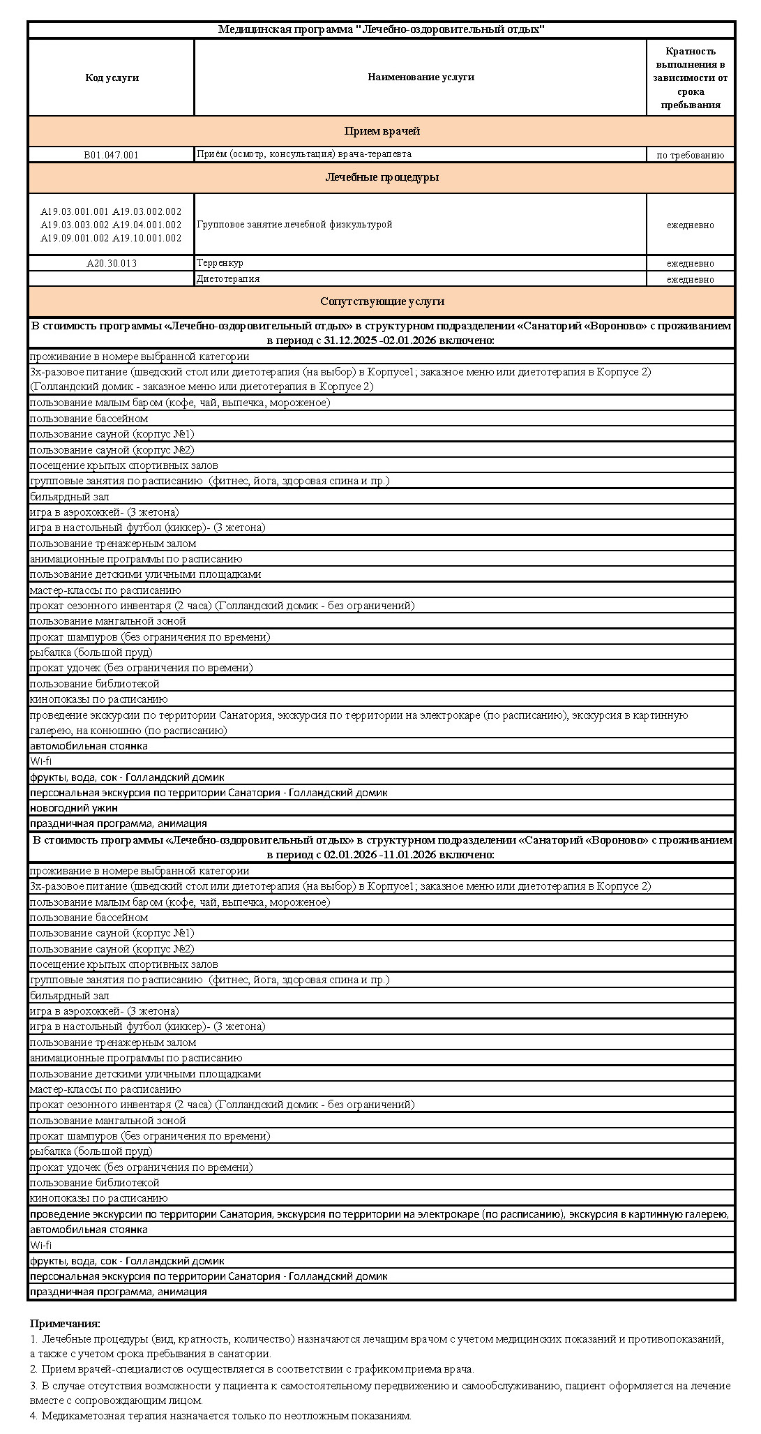 Санаторно-курортная карта для путевок с лечением (для санаториев)